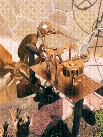 Let nature DJ your backyard! The drummer’s arms spin smoothly with every gust, creating a playful dance of light and shadow. Who knew wind could be this entertaining?