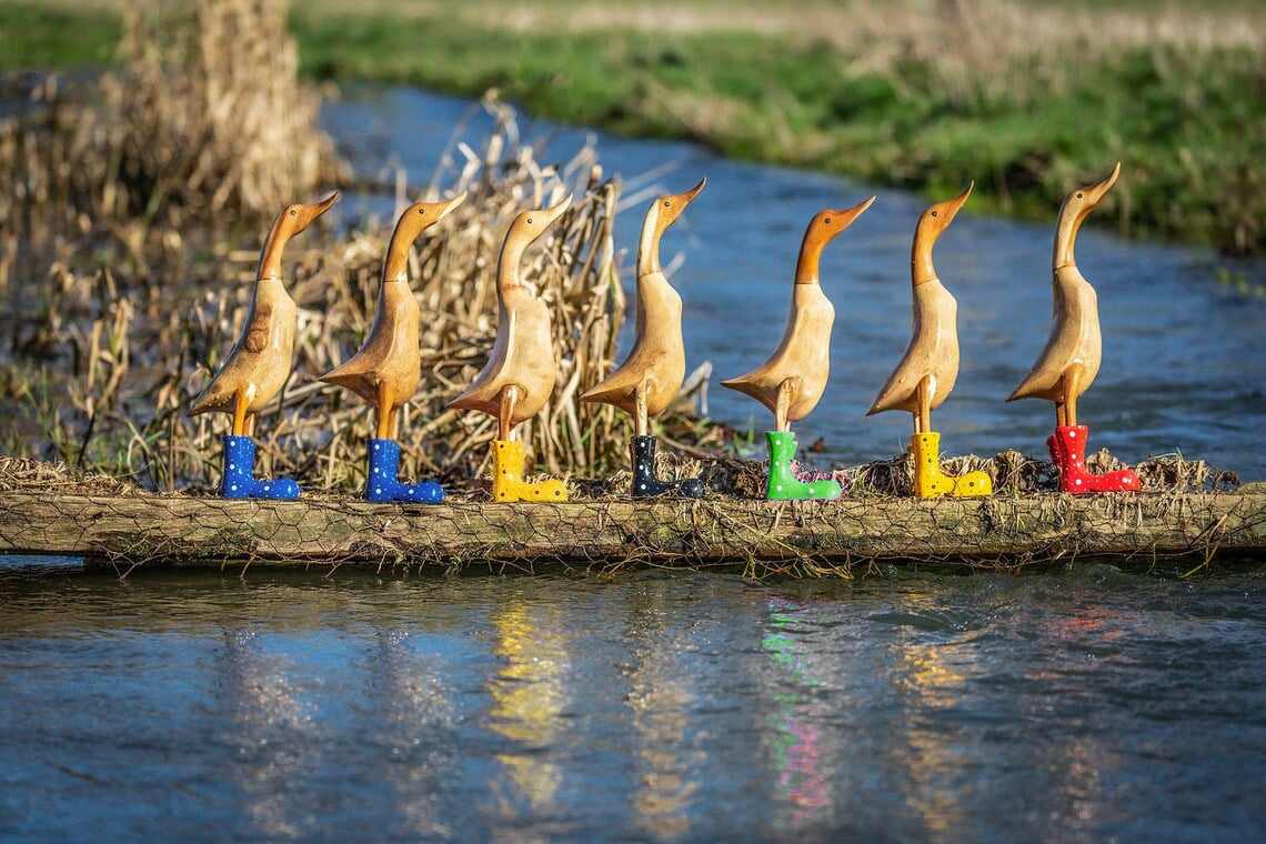 These duck come wearing wonderful colourful spotty or flowery wellies! Please note, colours may vary in vibrance. As each duck is hand painted boots range from light to brighter!