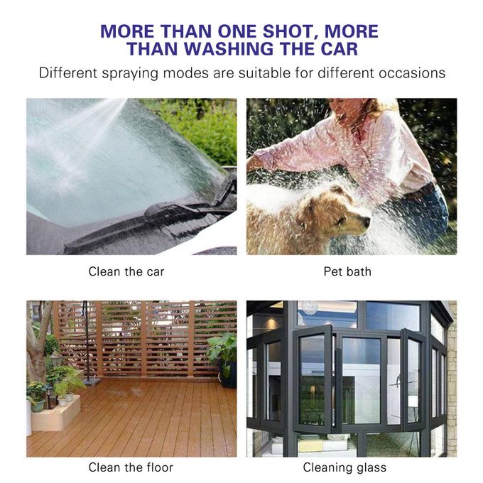 Widely used, in addition to car washing, it is also suitable for all types of floor cleaning, including indoor floors, workshop floors, terraces, garden pavements, etc., able to quickly and thoroughly remove dirt, oil and stains. Since the spray pattern and intensity of the water flow can be adjusted, it is also suitable for watering plants such as gardens, lawns, flower pots, etc., providing the appropriate amount of moisture.
