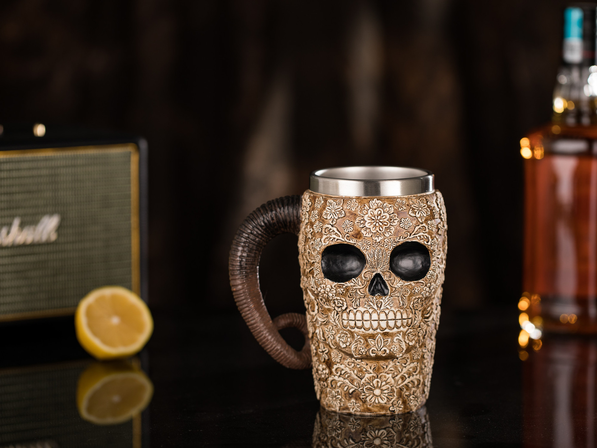 Halloween best gift, strong enough cold cast resin tankard with stainless-steel insert, this skull tankard could be a great gift for your family and friends who love skulls