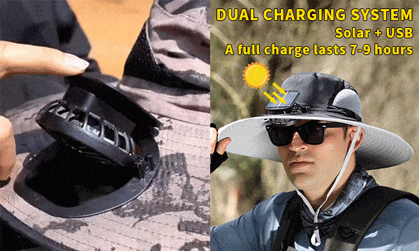 The Cooling Hat features a built-in, solar-powered fan that provides a constant flow of cooling air around your head and face. The wide brim offers UPF50+ sun protection that shields you from harmful UV rays.